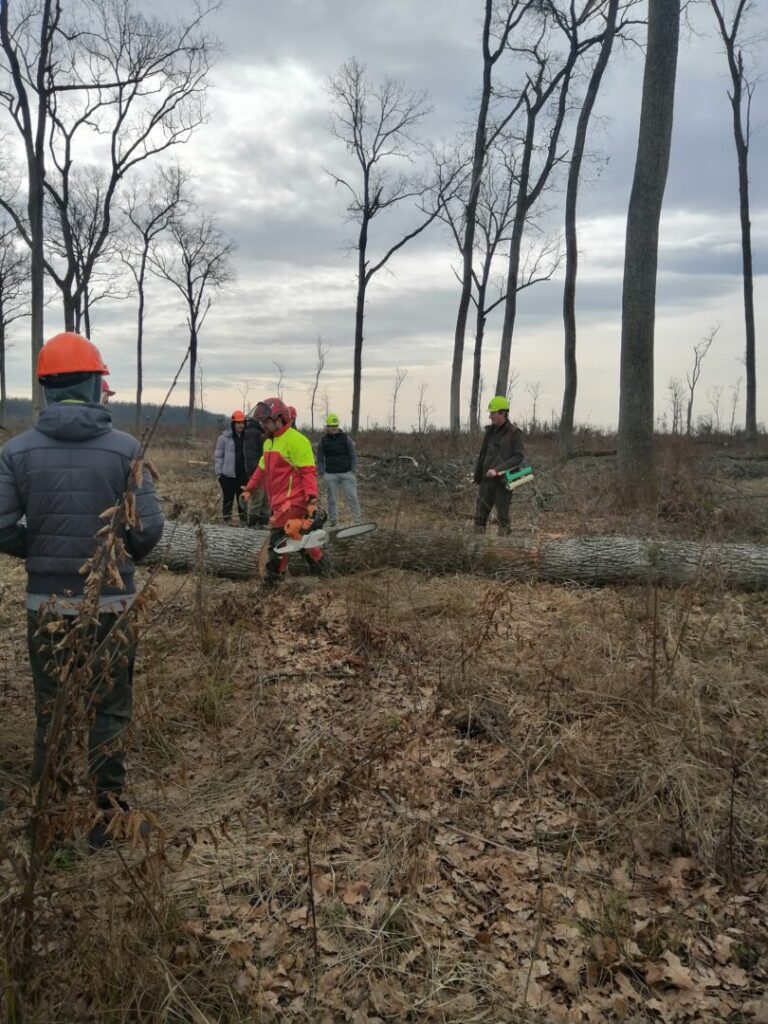 Tijekom posjeta stručni inženjeri šumarstva mag.ing.silv. Ivan Grbić i mag.ing.silv. Vitomir Kajgana demonstrirali su postupak planiranja i izvođenja sječe, s posebnim naglaskom na sigurnost i pravilnu procjenu stabla.