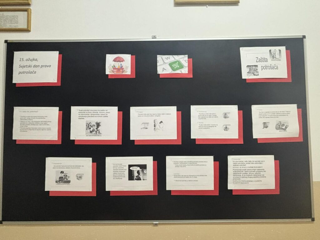Učenici svih razreda šumarske struke koji su pokazali interes uključili su se u oblježavanje tog dana izradom  panoa u holu škole. Pano donosi osnovne informacije o pravima potrošača. Cilj projekta je podizanje svijesti o gospodarskoj važnosti i snazi potrošača, kao što je i sam J. F. Keneddy rekao : „Potrošači smo svi mi, uključujući i mene, kao predsjednika SAD-a. Potrošači su najveća gospodarska skupina na koju utječe svaka javna ili privatna gospodarska odluka, ali iako su najveća i najvažnija skupina, njihovi glasovi se vrlo često ne čuju. Glas potrošača mora se čuti.“